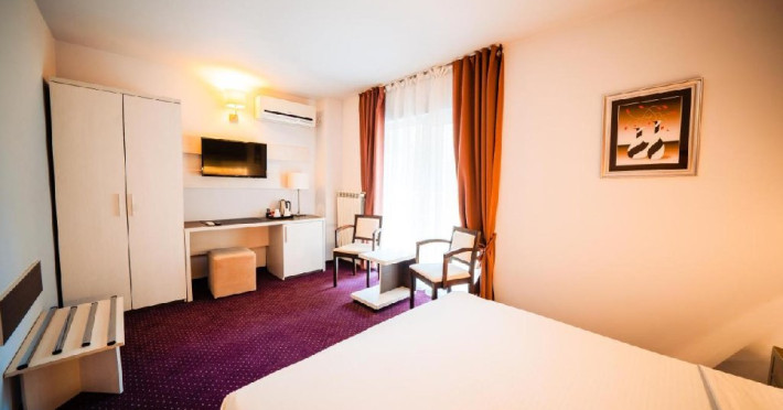 - Herculum: Cu vedere spre munte sau cu o panorama spectaculoasa asupra statiunii confortul acestei camere este garantat de patul invelit in lenjerie din bumbac 100%. Camerele dispun de balcon propriu. Facilitati camera: wi-fi, aer conditionat, tv cu ecran plat, telefon, minibar, apa plata, bomboane ciocolata, halat, papuci, perie de haine, articole de baie (casca baie, sapun, gel de dus, sampon, lotiune corp), uscator de par, baie cu cabina de dus, birou, fotolii, balcon cu vedere panoramica.