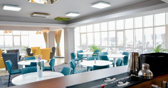 Acesta detine restaurant, o sala de fitness, salon de masaj, o sala de conferinta cu o capacitate de 180 locuri dotate cu TV, proiector cu ecran si telecomanda, sistem audio, internet wireless si un bar la ultimul etaj ce ofera o priveliste superba asupra intregii Vai a Teleajenului, cu o capacitate de 50 locuri.