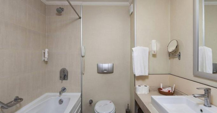 Camerele duble matrimoniale sau dublu twin- sunt dotate cu grup sanitar propriu cu uscator de par, TV cablu, minibar, aer conditionat, telefon cu acces international, incalzire centralizata, acces Internet, acces pe baza de cartela, balcon pentru camerele de la etaj. Majoritatea camerelor sunt dotate cu pat matrimonial. Vedere spre gradina si mare sau vedere partiala spre mare.