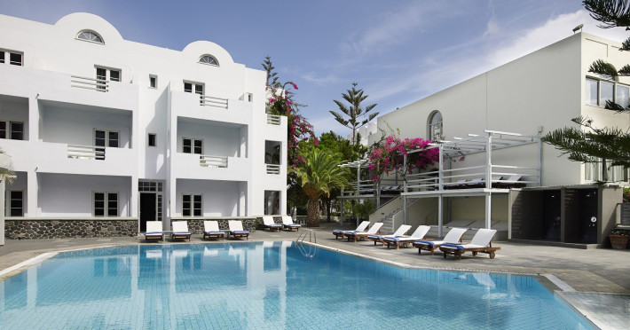 Beautifully situated on the Greek island of Santorini, one of the most spectacular islands in the world, in the heart of Kamari village, famous for its astonishing black-sand beach, deep-blue water, unique archaeological and historical heritage as well as lively nightlife and dining scene.Our hotel offers variety of distinctive guestrooms and authentic hospitality. The resort’s rooms and suites feature a blend between traditional Greek decor and modern beauty with private balconies, relaxing pools, tranquil gardens and serene spa. You’ll encounter a seemingly endless variety of activities to enjoy during your stay, whether you prefer long days on our beach or greeting the morning with a swim in our outdoor pools or savor traditional Greek cuisine and wines at our inviting restaurants. When relaxation is in order, soothing sauna and pampering treatments at the Spa are ready to rejuvenate you.Beautifully situated on the Greek island of Santorini, one of the most spectacular islands in the world, in the heart of Kamari village, famous for its astonishing black-sand beach, deep-blue water, unique archaeological and historical heritage as well as lively nightlife and dining scene.Our hotel offers variety of distinctive guestrooms and authentic hospitality. The resort’s rooms and suites feature a blend between traditional Greek decor and modern beauty with private balconies, relaxing pools, tranquil gardens and serene spa. You’ll encounter a seemingly endless variety of activities to enjoy during your stay, whether you prefer long days on our beach or greeting the morning with a swim in our outdoor pools or savor traditional Greek cuisine and wines at our inviting restaurants. When relaxation is in order, soothing sauna and pampering treatments at the Spa are ready to rejuvenate you.