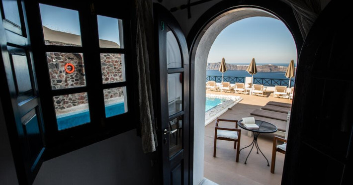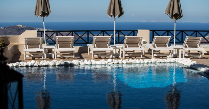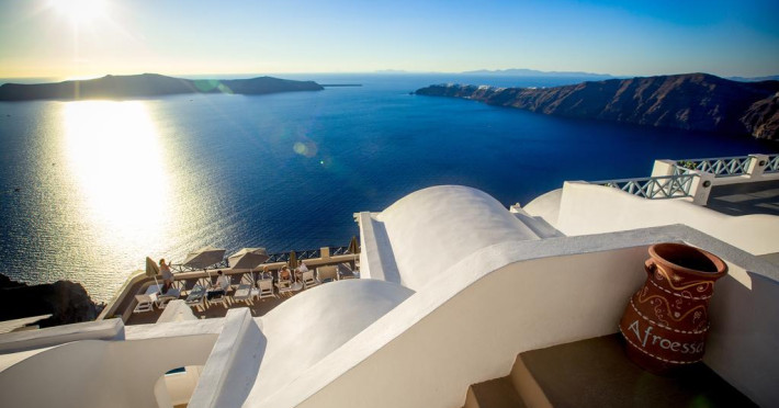 Afroessa Hotel este o proprietate de 3 stele situată în Imerovigli (Santorini) care oferă camere cu vedere la mare, un restaurant, o piscină în aer liber și o terasă cu șezlonguri și umbrele de soare. Proprietatea are servicii de concierge și închirieri auto. Se oferă acces gratuit la internet Wi-fi în spațiile publice.