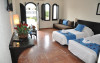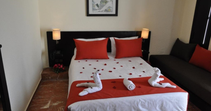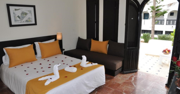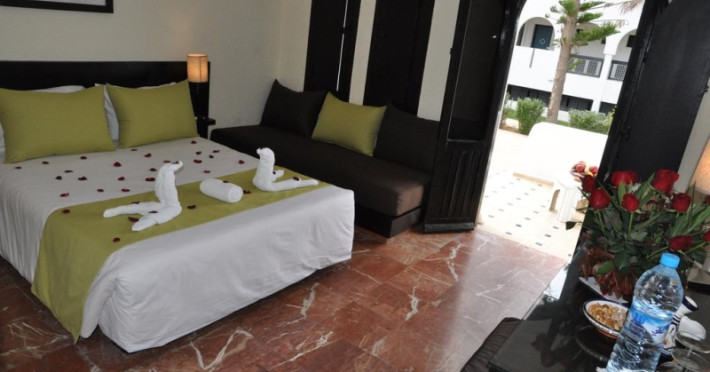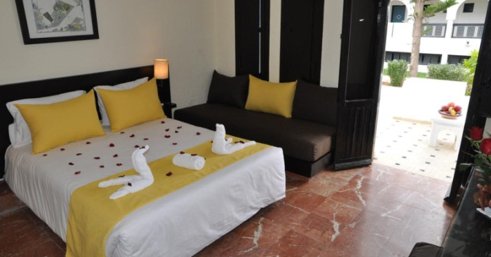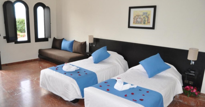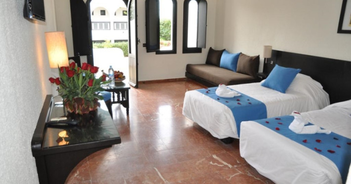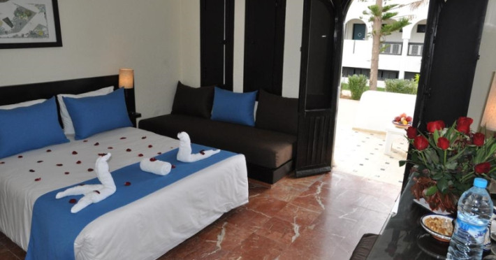 The Moorish-style Hôtel les Omayades is just 5 minutes from the center of Agadir and 800 meters from the beach. It has an outdoor pool in the garden.All rooms have air conditioning and satellite TV, and most have a flowered terrace. Each home also has carved wooden furniture and a marble bathroom. They all have garden views.Guests can enjoy traditional cuisine in the Moroccan restaurant and enjoy cocktails in the property's bar. Breakfast is prepared every morning.The hotel has a 24-hour front desk and free Wi-Fi.Agadir Airport is a 20-minute drive away. Free private parking is available on site.