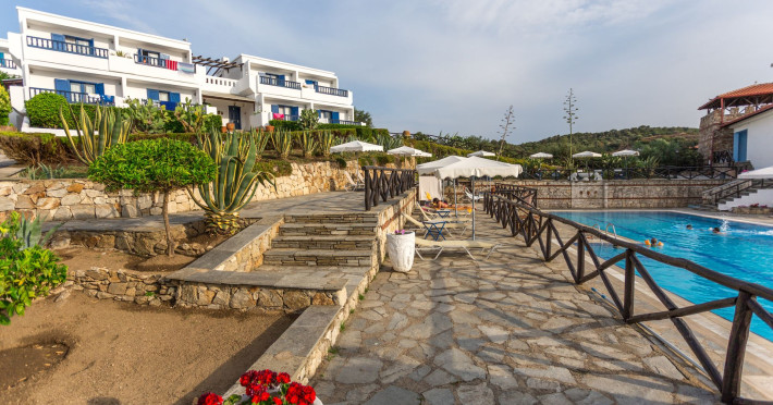 Hotelul Agionissi Resort**** este situat la 50 de metri de plaja, pe insula Ammouliani, in apropiere de Ouranoupolis. Ammouliani este singura insula locuita din Halkidiki.