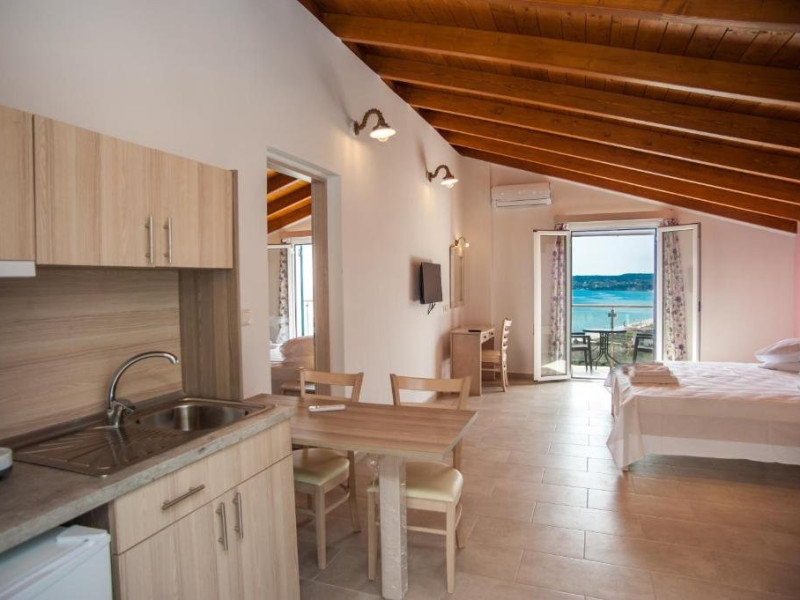 Descriere: Situat in fermecatorul oras Lourdata din Grecia, Agios Gerasimos Studios este o comoara ascunsa, amplasata intr-un cadru linistit, la doar 150 de metri de plaja. Inconjurat de verdeata abundenta, acest complex de familie ofera studiouri cu facilitati de gatit si vederi pitoresti catre Marea Ionica sau catre muntii impunatori.Localizare: Agios Gerasimos Studios se afla intr-o zona linistita din localitatea Lourdata, la 150 m de plaja. Orasul si portul Argostoli se afla la 15 km. Aerportul Kefalonia se afla la 12,3 km.