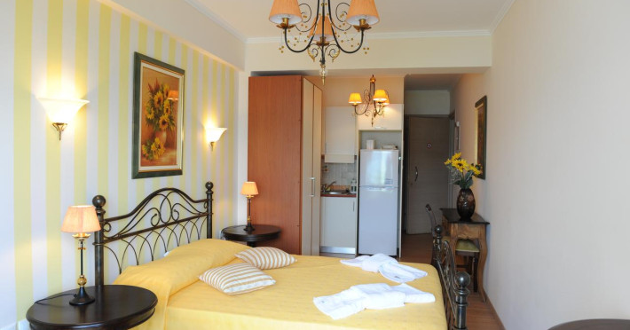 Camerele de la Agnadi Suites Boutique Hotel & Spa sunt dotate cu aer condiționat, Tv cu canale prin satelit și seif. În camere există baie cu foehn și articole de toaletă gratuite. Unele camere au balcon, cu vedere la mare, unde oaspeții pot admira apusul sau răsăritul soarelui. Oaspeții au acces gratuit la serviciul Wi-fi în camere. Curățenia in cameră se face zilnic. În fiecare unitate de cazare există o bucătărie utilată cu frigider și ustensile de bucătărie. Proprietatea oferă camere pentru nefumători.