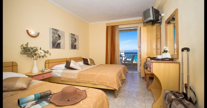 baie privata, aer conditionat, uscator de par, chicineta complet utilata, frigider, cafetiera, TV satelit, acces gratuit la internet wi-fi, seif, balcon cu vedere spre mare.