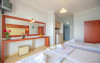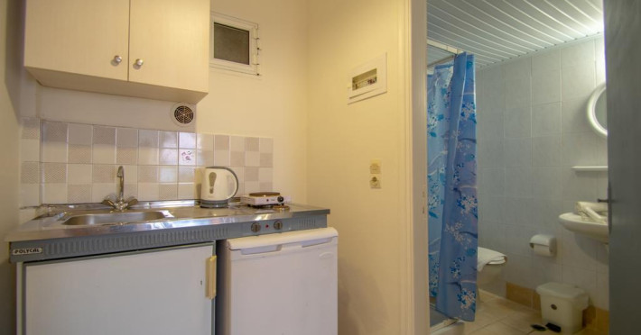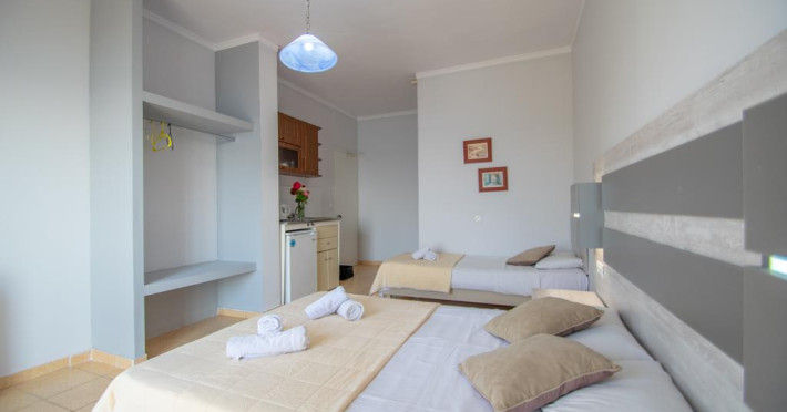 Unele camere au balcon cu vedere la mare, unde oaspeții pot admira apusul sau răsăritul soarelui. În camere există baie cu duș prevăzută cu foehn. Camerele confortabile de la Agoulos Inn sunt dotate cu pardoseală de gresie/ marmură, aer condiționat, Tv și seif. Curățenia in cameră se face zilnic. Fiecare unitate de cazare include o chicinetă utilată cu frigider, plită de gătit și ustensile de bucătărie. Proprietatea oferă camere pentru familie cu o suprafață mai mare și un număr mai mare de paturi față de cele standard. Se pot rezerva de asemenea camere pentru nefumători.