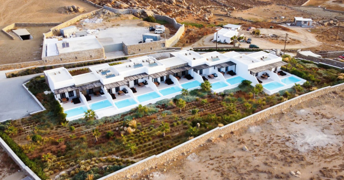 Inspired by the traditional Cycladic architectural style, the exteriors of Agrari BO Suites present a gracious blend of whitewashed surfaces and beautifully crafted cobbled elements, seamlessly blending with the natural environment. You will be surrounded by a typical Mediterranean garden, brimming with herbal scents, in a serene setting, made for daydreaming.Each one of our suites comes with a private pool and a shaded dining area, where you can spend endless hours soaking up the sun and the unparalleled ambiance of the Mykonian landscape. Can you think of a better setup to enjoy intimate moments with your loved ones?Advantageously located in Agrari, an area protected from tourist spotlights, you will be at very close proximity to the most celebrated Mykonian hot spots while opting for exclusivity and peace when you wish.Inspired by the traditional Cycladic architectural style, the exteriors of Agrari BO Suites present a gracious blend of whitewashed surfaces and beautifully crafted cobbled elements, seamlessly blending with the natural environment. You will be surrounded by a typical Mediterranean garden, brimming with herbal scents, in a serene setting, made for daydreaming.Each one of our suites comes with a private pool and a shaded dining area, where you can spend endless hours soaking up the sun and the unparalleled ambiance of the Mykonian landscape. Can you think of a better setup to enjoy intimate moments with your loved ones?Advantageously located in Agrari, an area protected from tourist spotlights, you will be at very close proximity to the most celebrated Mykonian hot spots while opting for exclusivity and peace when you wish.