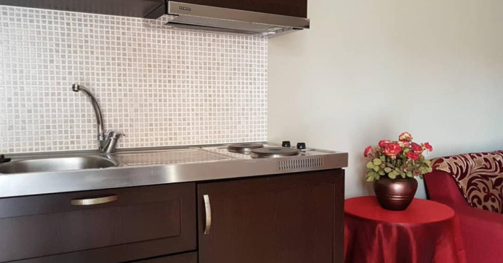 La proprietate există un snack-bar care oferă cafea, băuturi și gustări. Masa poate fi servită atât în interior, cît si în aer liber, pe terasă, în funcție de vreme. Oaspeţii îşi pot pregăti micul dejun şi alte mese şi le pot savura chiar pe balcon.