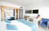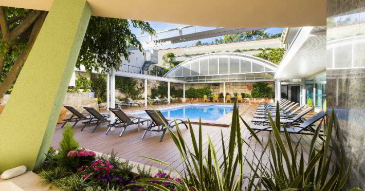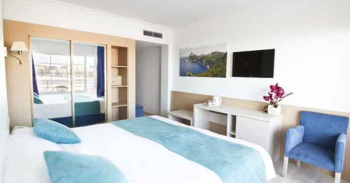 This hotel lies just a few paces from the nearest beach in the tourist centre of Palma Nova. The resort centre lies close by and offers a selection of bars, restaurants and shopping venues. Links to the public transport network are to be found about 35 m from the hotel.||The welcoming beachside hotel offers 5 floors with a total of 109 rooms. Facilities include a foyer with a 24-hour reception desk, a bar and a restaurant. An in-house laundry service rounds off the offerings.||Each of the finely furnished rooms comes with an en suite bathroom, a hire safe, a direct dial telephone, a satellite TV and a balcony. Centrally regulated heating and air conditioning also come as standard.||In the outdoor complex is a swimming pool as well as a sun terrace with sun loungers laid out ready for use. There is also an indoor pool to take advantage of and the nearest golf course is approximately 3 km away.||Guests may select their breakfast from an ample buffet..This hotel lies just a few paces from the nearest beach in the tourist centre of Palma Nova. The resort centre lies close by and offers a selection of bars, restaurants and shopping venues. Links to the public transport network are to be found about 35 m from the hotel..Each of the finely furnished rooms comes with an en suite bathroom, a hire safe, a direct dial telephone, a satellite TV and a balcony. Centrally regulated heating and air conditioning also come as standard..Guests may select their breakfast from an ample buffet..Guests may select their breakfast from an ample buffet..In the outdoor complex is a swimming pool as well as a sun terrace with sun loungers laid out ready for use. There is also an indoor pool to take advantage of and the nearest golf course is approximately 3 km away.Datorita dinamicitatii domeniului disponibilitatea ofertelor se modifica de la un moment la altul. De aceea ofertele sunt valabile in limita locurilor disponibile. Agentia nu este responsabila pentru eventualele neconcordante care pot aparea intre informatiile privind tarifele si alte detalii din site si informatiile primite in agentie. In aceste cazuri vor avea prioritate, intotdeauna, informatiile primite in agentie.