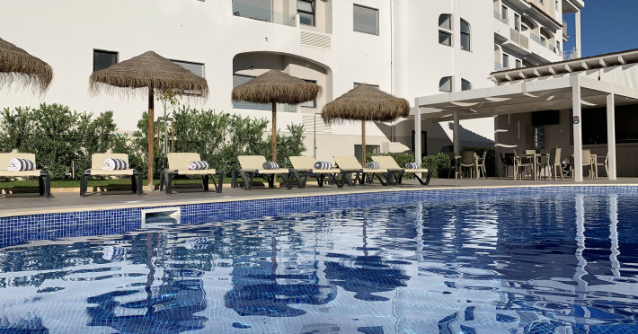 There is a shuttle between the hotel and the airport (for a fee). The accommodation Agua Hotels Alvor Jardim has a 24h reception, a lobby bar, Wi-Fi, internet access, a lift as well as parking spaces. In the outdoor area of the property you will find a pool that is open seasonally, where sun loungers and sun umbrellas are available for free. You can store your valuables in the safe, and your luggage in the hotel`s storage room. There is also a laundry service available at an additional cost to customers. Ironing equipment can be rented at the hotel for a fee. If you want to explore the holiday region, you can use the car rental service close to the hotel (extra fee). Catering Your physical well-being is catered for by the pool bar. Distances