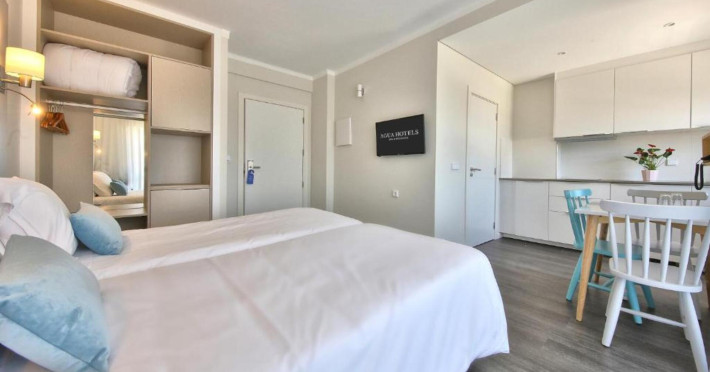There is a shuttle between the hotel and the airport (for a fee). The accommodation Agua Hotels Alvor Jardim has a 24h reception, a lobby bar, Wi-Fi, internet access, a lift as well as parking spaces. In the outdoor area of the property you will find a pool that is open seasonally, where sun loungers and sun umbrellas are available for free. You can store your valuables in the safe, and your luggage in the hotel`s storage room. There is also a laundry service available at an additional cost to customers. Ironing equipment can be rented at the hotel for a fee. If you want to explore the holiday region, you can use the car rental service close to the hotel (extra fee). Catering Your physical well-being is catered for by the pool bar. Distances- Aqua park: approximately at 25 km