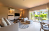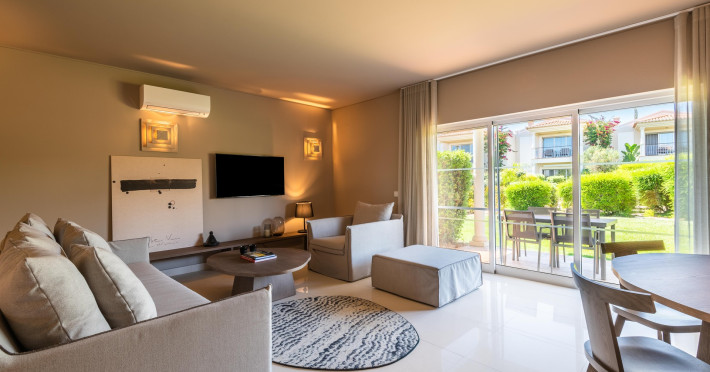 Family Suite : This suite on two floors, luxuriouslydecorated and fully equipped consists of two rooms with private bathroom, onewith balcony, a dining room and living room equipped with satellite TV, DVDplayer, electric shutters, a house of service bathroom and a fully equippedkitchen. All suites have access to the large gardens of the Resort.