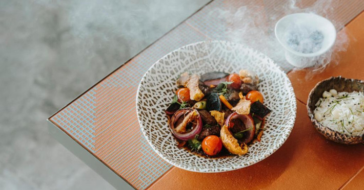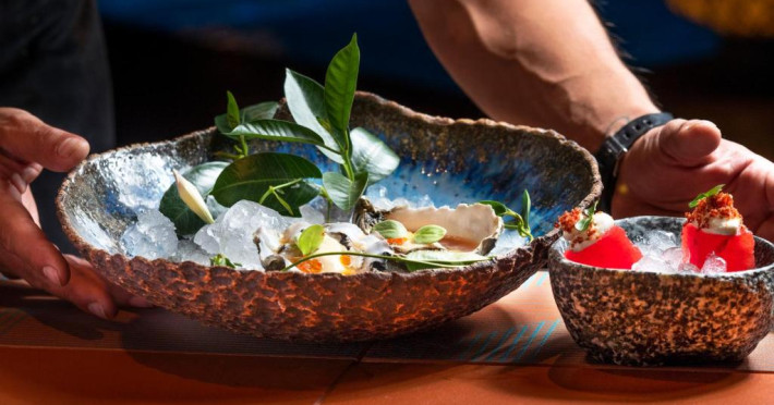 Restaurantul Alabastro de la Aguas de Ibiza servește mancăruri internaționale și eclectice, realizate cu ingrediente locale, de sezon. Restaurantul Maymanta oferă mancăruri din bucătăria peruviană și are bucătărie deschisă.
