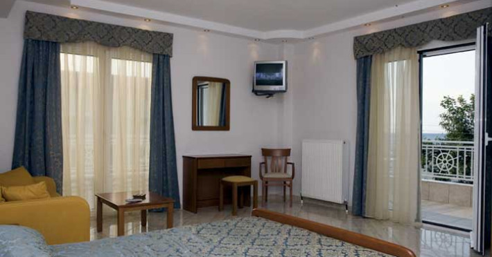 AC, baie cu dus, frigider, TV, chicineta complet utilata, camere cu vedere la mare.