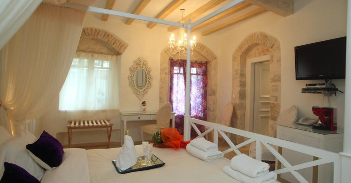 Sunt disponibile 9 camere. În camere există baie cu cadă sau duș, foehn, articole de toaletă gratuite, precum și halate de baie și papuci. Camerele luminoase de la Aigli Luxury Retreat Hotel sunt dotate cu parchet, aer condiționat, Tv și seif. Unele camere au vedere la oraș sau la grădină. Un minibar și o mașină pentru preparare cafea sau ceai se află în fiecare cameră. Oaspeții pot solicita serviciul de room service pentru a servi masa sau diverse băuturi. Oaspeții au acces gratuit la serviciul Wi-fi în camere. Curățenia in cameră se face zilnic. Anumite camere au zonă de relaxare cu canapea și cadă cu hidromasaj care asigură un plus de confort și răsfăț. De asemenea, este disponibilă o zonă de luat masa. Proprietatea oferă camere pentru nefumători.