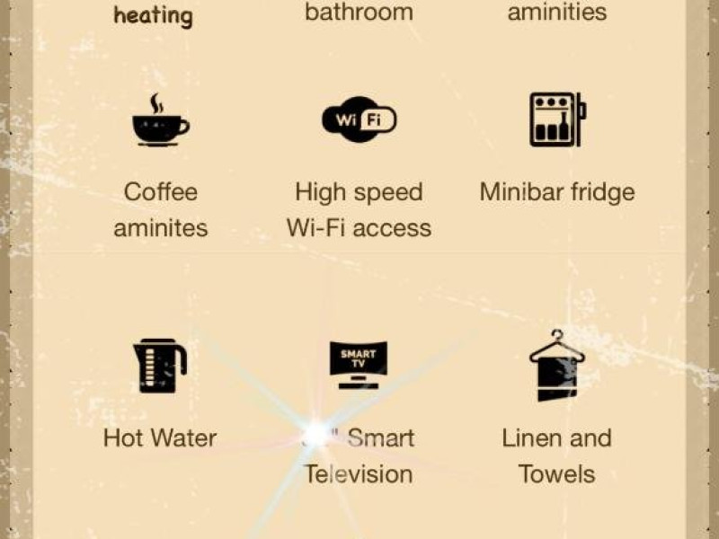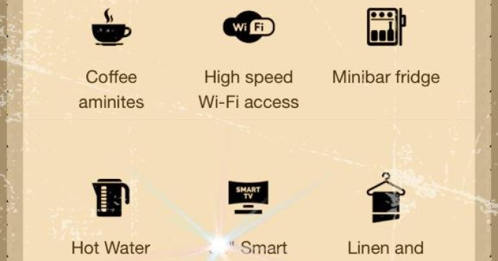 Toate camerele imbina arhitectura originala cu mobilierul modern. Fiecare camera include TV prin satelit, aer conditionat si baie privata.
