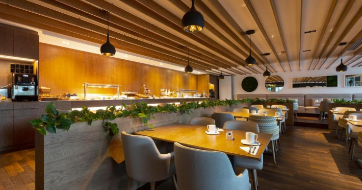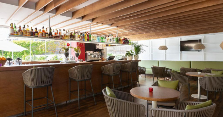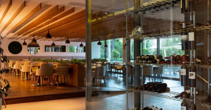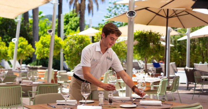 Restaurantul Airecel servește meniuri de pranz bistro și mancăruri in stil gourmet. Are o fereastră mare cu vedere la grădină și la Munții Tramuntana.