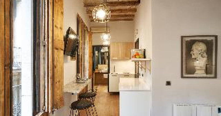 This apartment complex is ideally situated in the centre of the Gothic district of Barcelona. The hotel is located close to many of the city's most renowned attractions. Guests will find themselves within easy walking distance of Las Ramblas, the cathedral, the Picasso Museum, Santa Caterina Market and the food market of La Boqueria. The harbour is located just a short distance away. The sandy beach of Barceloneta can be found 500 metres from the property. The complex is conveniently situated just 20 km away from the airport. This wonderful apartment complex enjoys a period design. The apartments enjoy tasteful decor and a relaxing ambiance. Guests will be pleased by the excellent service that the complex has to offer. TWO OPTIONS FOR CHECK-IN: Customers can choose two options for check in: CHECK ONLINE OR PRESENTIAL CHECK-IN.This apartment complex is ideally situated in the centre of the Gothic district of Barcelona. The hotel is located close to many of the city's most renowned attractions. Guests will find themselves within easy walking distance of Las Ramblas, the cathedral, the Picasso Museum, Santa Caterina Market and the food market of La Boqueria. The harbour is located just a short distance away. The sandy beach of Barceloneta can be found 500 metres from the property. The complex is conveniently situated just 20 km away from the airport. This wonderful apartment complex enjoys a period design. The apartments enjoy tasteful decor and a relaxing ambiance. Guests will be pleased by the excellent service that the complex has to offer. TWO OPTIONS FOR CHECK-IN: Customers can choose two options for check in: CHECK ONLINE OR PRESENTIAL CHECK-IN.