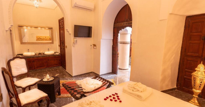 Come and discover, in the bends of the dancing alleys of the medina of Marrakech, an oasis of tranquility, the AIX KABAJ RIAD & SPA. This elegant palace offers an exceptional setting where oriental tradition, heritage history and contemporary spirit are cCome and discover, in the bends of the dancing alleys of the medina of Marrakech, an oasis of tranquility, the AIX KABAJ RIAD & SPA. This elegant palace offers an exceptional setting where oriental tradition, heritage history and contemporary spirit are c