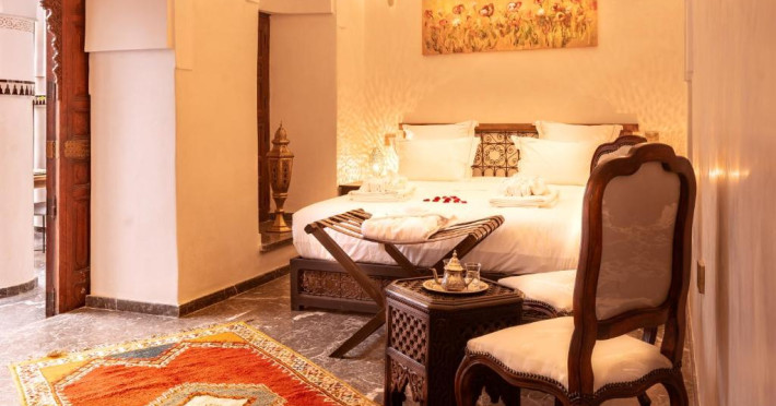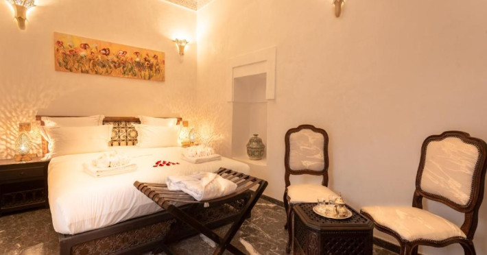 Come and discover, in the bends of the dancing alleys of the medina of Marrakech, an oasis of tranquility, the AIX KABAJ RIAD & SPA. This elegant palace offers an exceptional setting where oriental tradition, heritage history and contemporary spirit are c