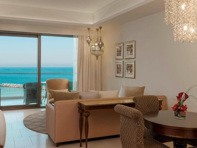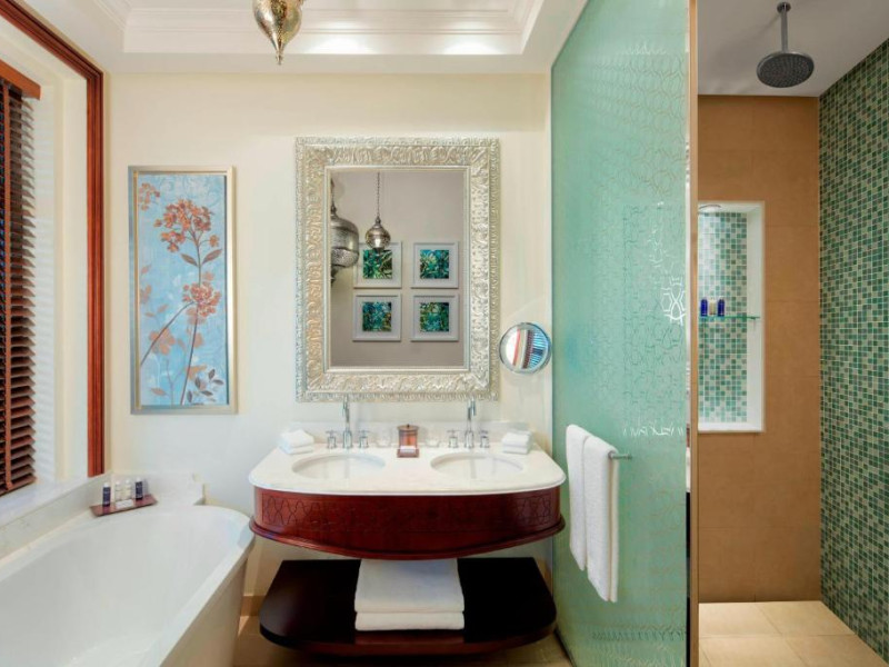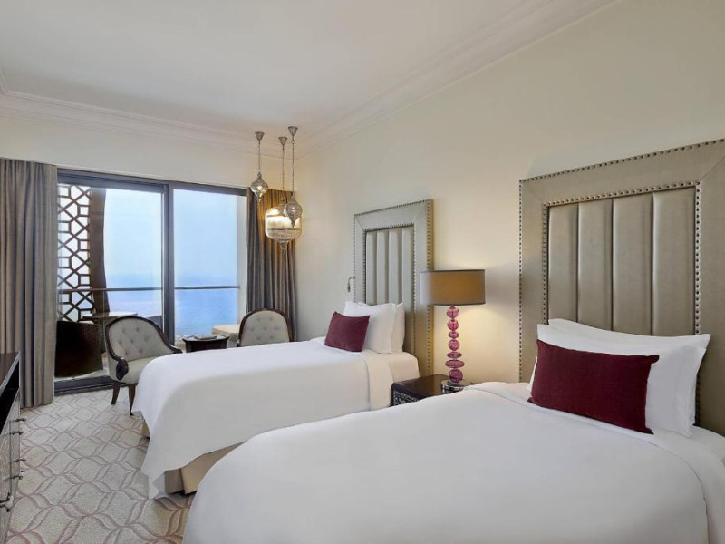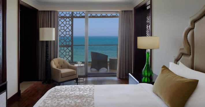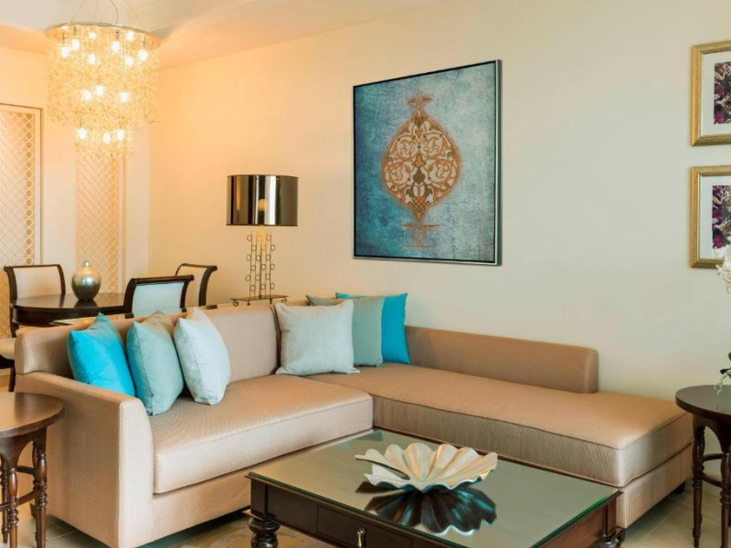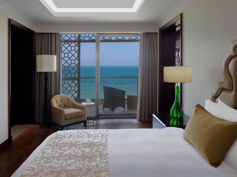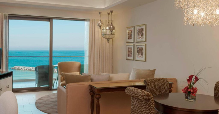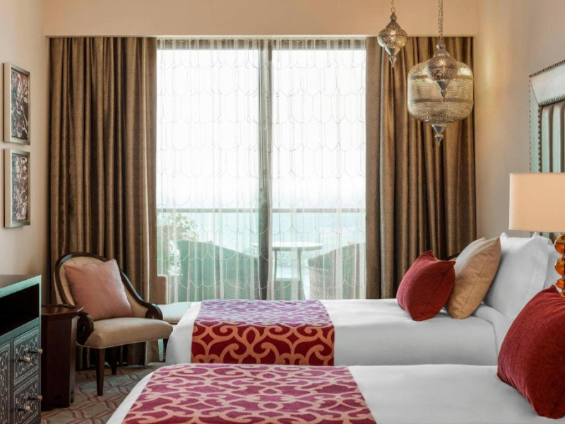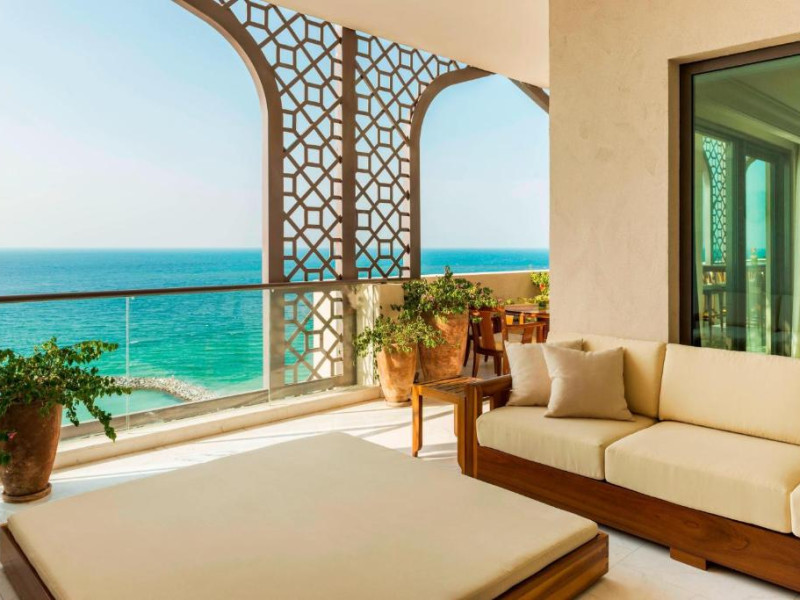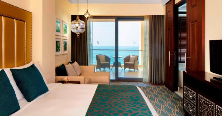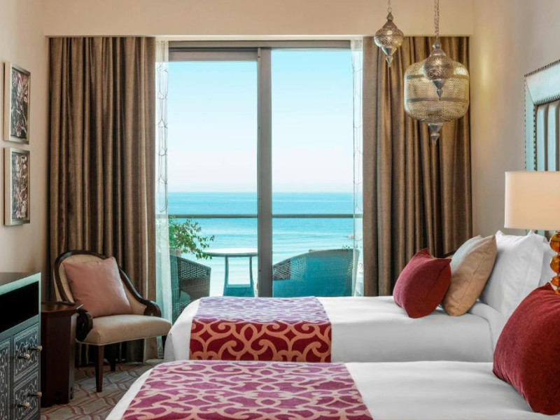 Ajman Saray oferă 205 camere și suite spațioase, cu vederi uimitoare asupra Golfului Persic și a paraului. Fiecare oferă balcon, televizor cu ecran plat și docking station pentru iPod. Suita include un living cu masă. Baia este dotată cu cadă și duș.