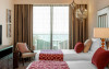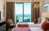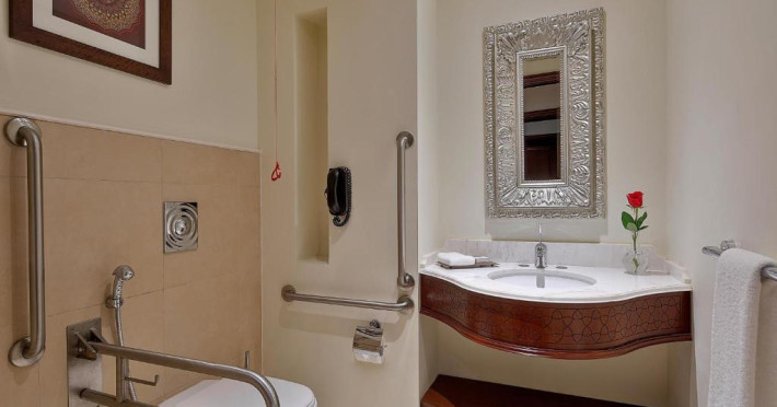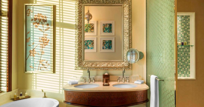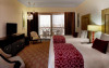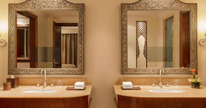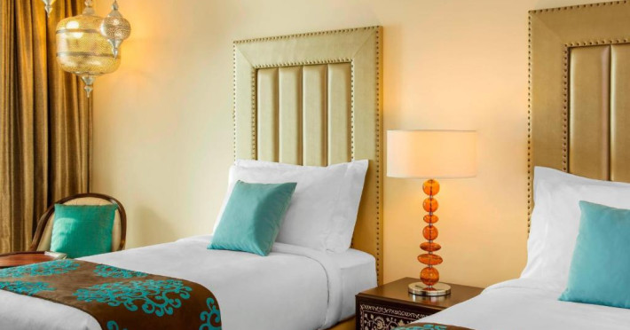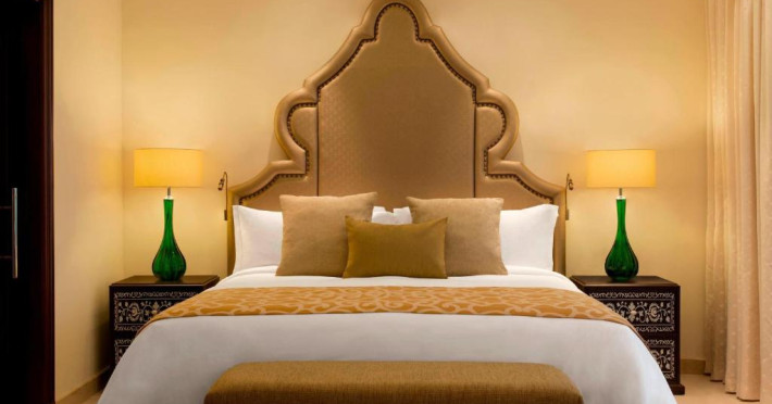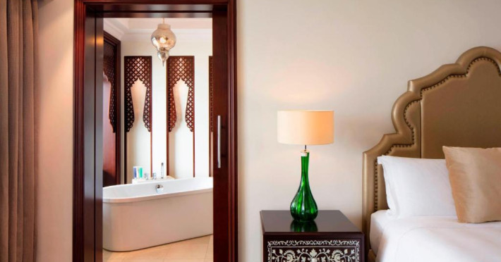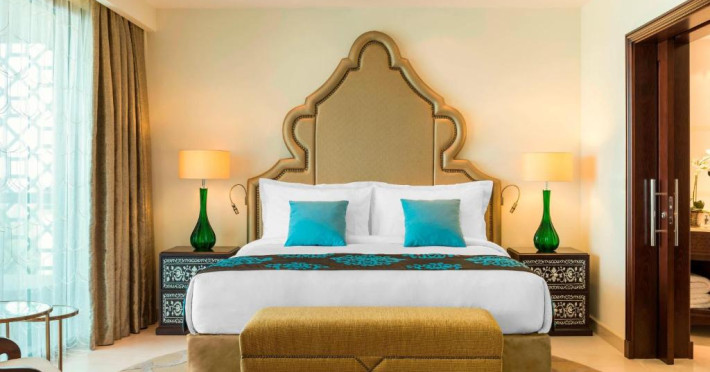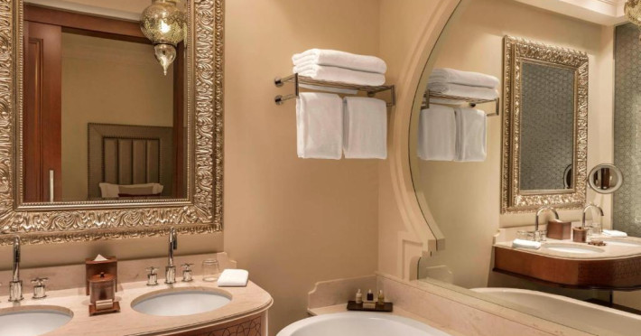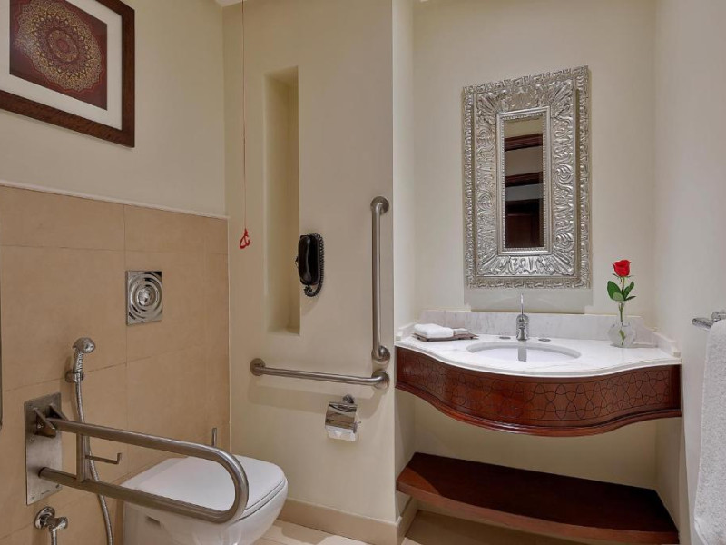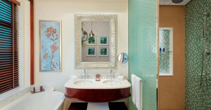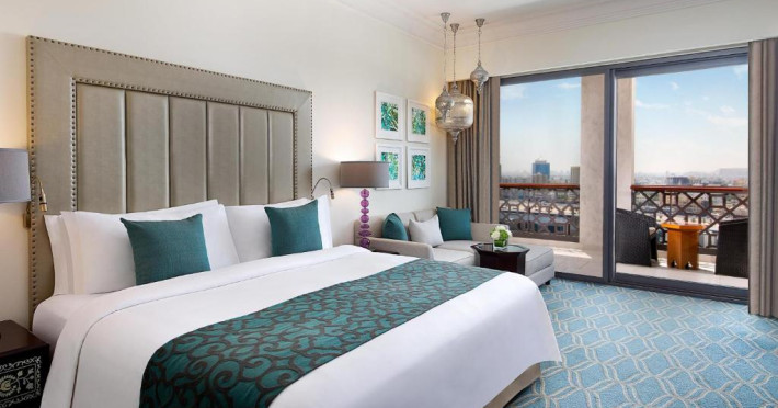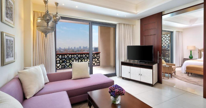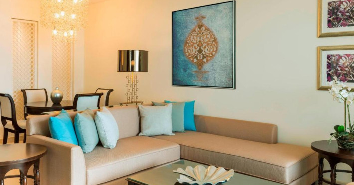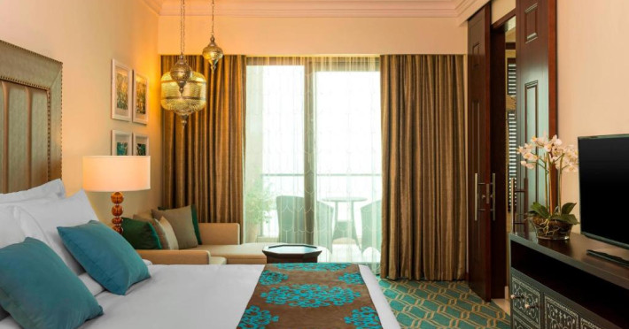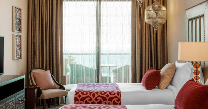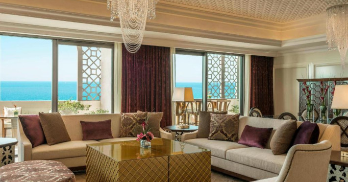 Ajman Saray oferă 205 camere și suite spațioase, cu vederi uimitoare asupra Golfului Persic și a paraului. Fiecare oferă balcon, televizor cu ecran plat și docking station pentru iPod. Suita include un living cu masă. Baia este dotată cu cadă și duș.
