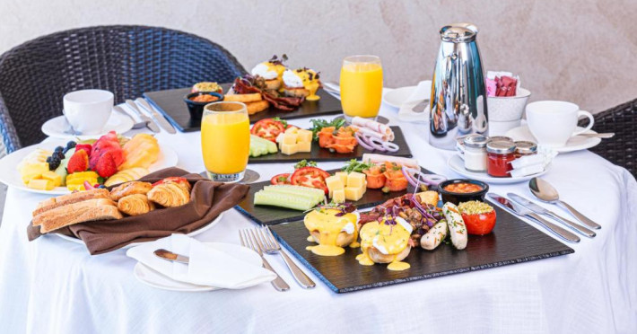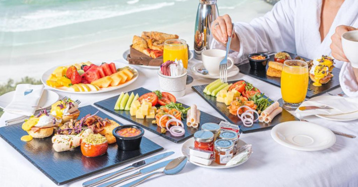 Oferă 6 restaurante și baruri, fiecare oferind o bucătărie distinctă, de la fructe de mare, arome mediteraneene, din Orientul Mijlociu și indiene, la grătare. Stațiunea are, de asemenea, un bar pe plajă și un lounge elegant.