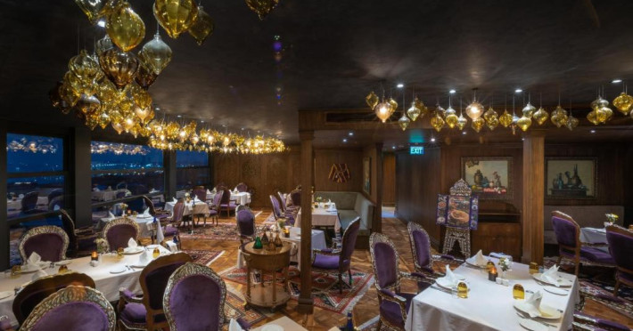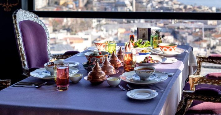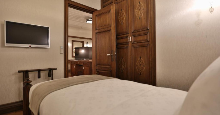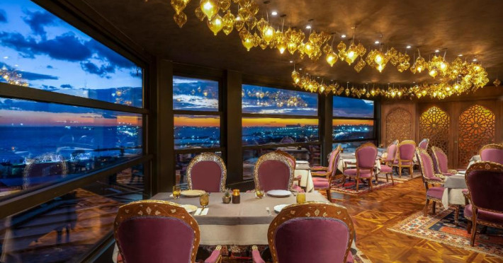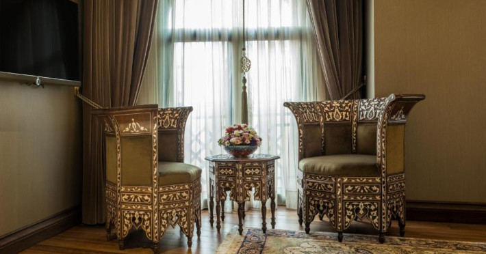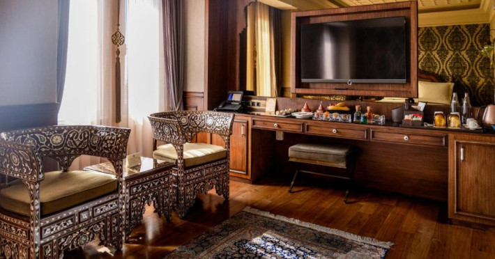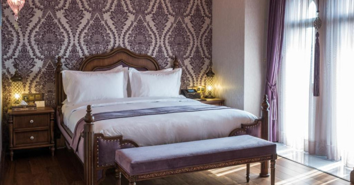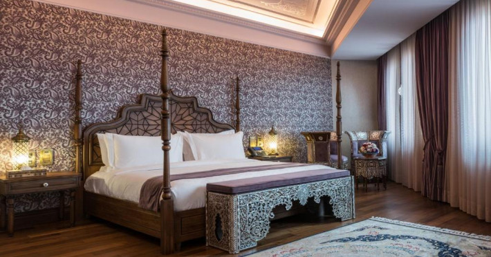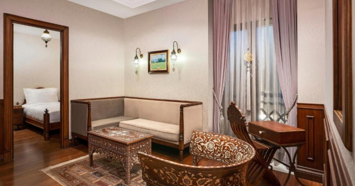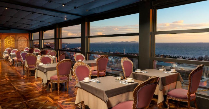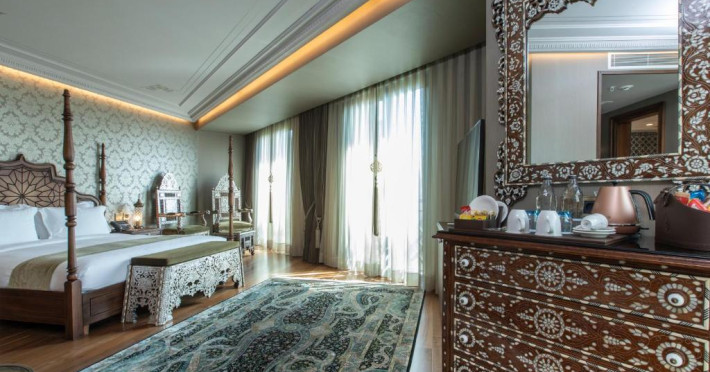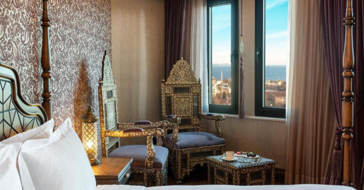 Camerele spațioase sunt mobilate cu piese artizanale și sunt dotate cu băi din marmură, oferind vedere spre Marea Marmara sau spre orașul vechi. Restaurantul Zeferan, situat la ultimul etaj, servește specialități turcești și azerbaidjene, avand o panoramă spectaculoasă asupra Istanbulului.