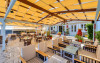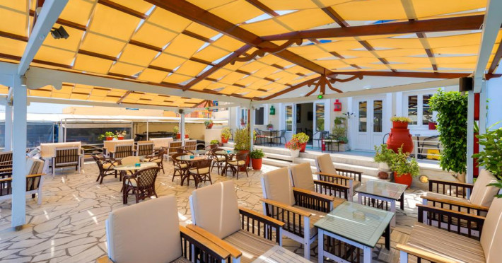 Akis are o sală special amenajată pentru servirea micului dejun. La proprietate există un bar care oferă cafea și diverse băuturi. Acestea pot fi servite atât în interior, cît si în aer liber, pe terasă, în funcție de vreme.