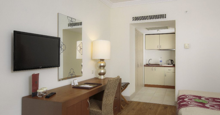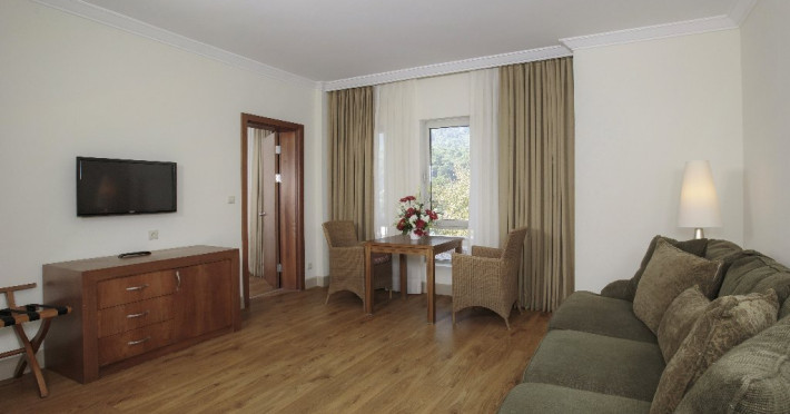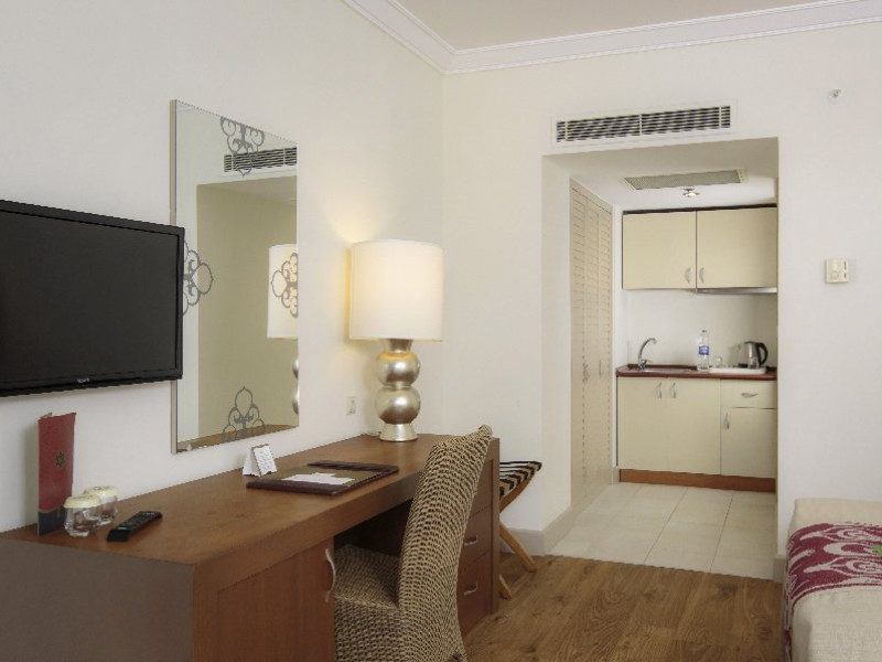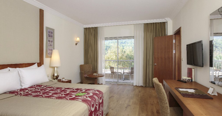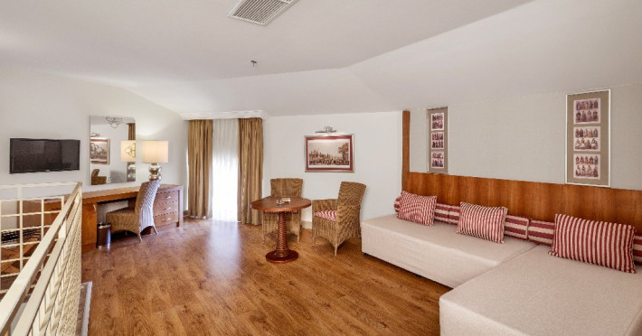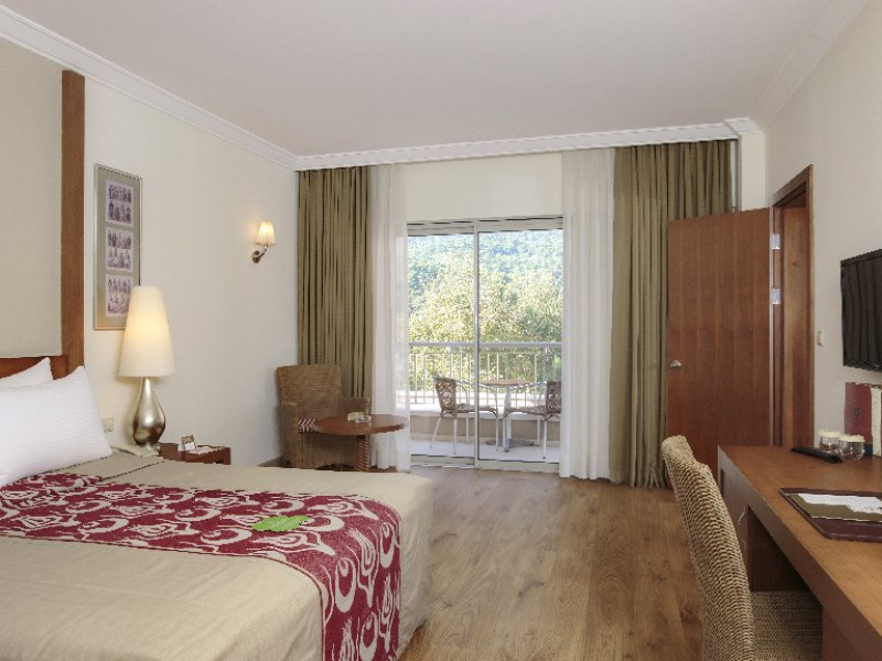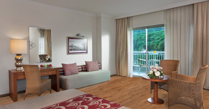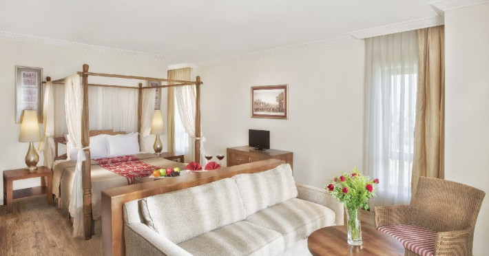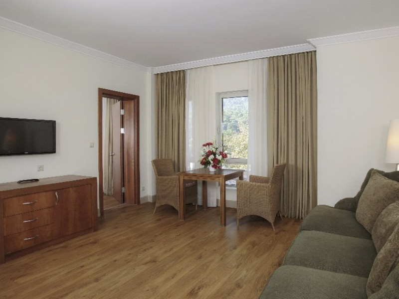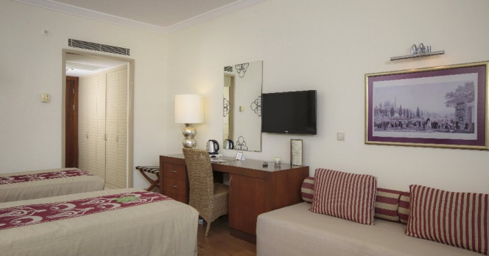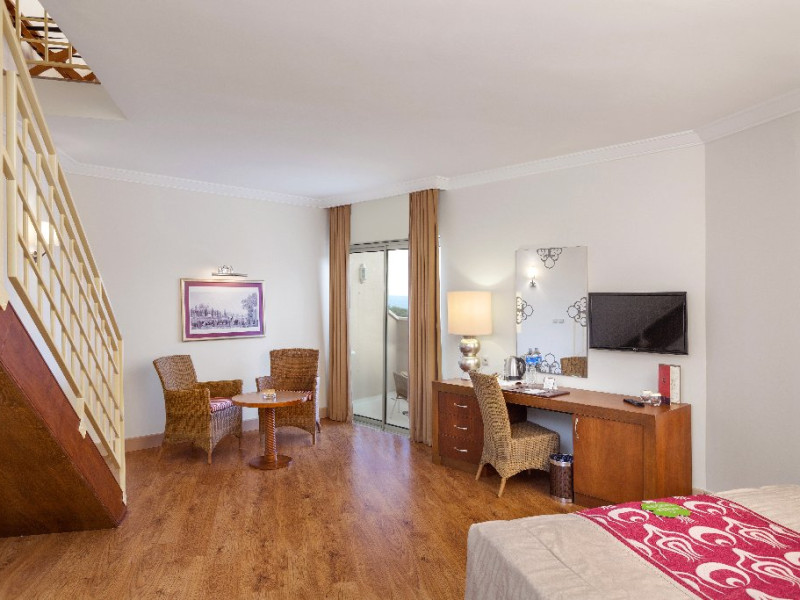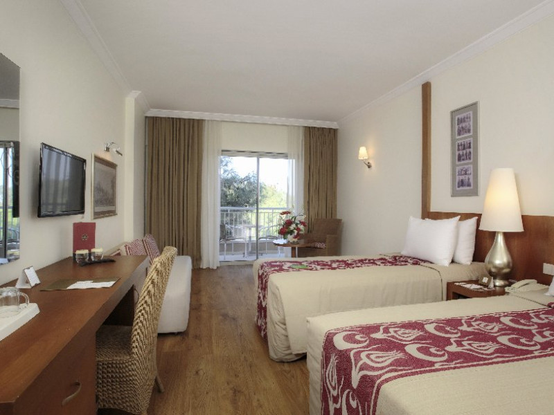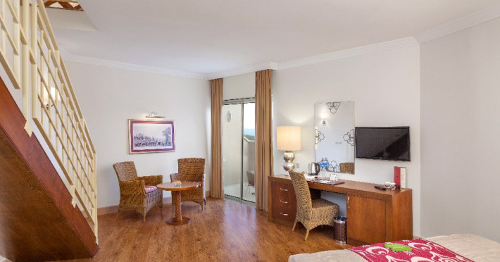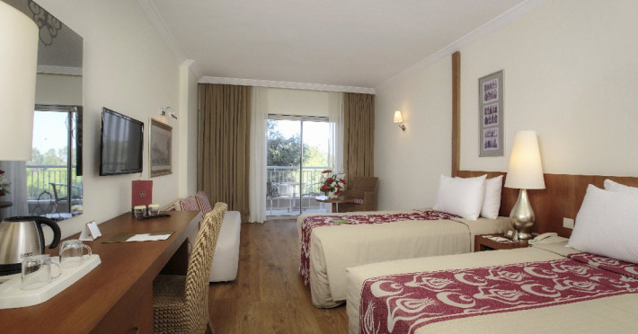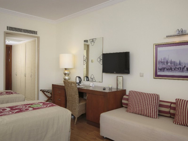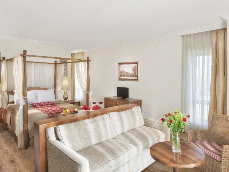 Camerele hotelului dispun de: telefon, televizor, minibar (se reumple zilnic cu bauturi racoritoare, apa si bere), seif, aer conditionat centralizat, internet wireless, baie cu cada, uscator de par, parchet, balcon, facilitati pentru prepararea ceaiului si cafelei. Camerele sunt decorate in stil traditional turcesc.