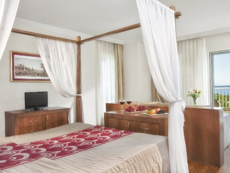 Hotelul ofera oaspetilor sai urmatoarele facilitati: restaurant principal, 4 restaurante a la carte (turcesc, pescaresc, italienesc, frantuzesc), barbeque, 7 baruri, cafenea, patiserie si inghetata, piscina exterioara (2.635 mp), piscina interioara (129 mp), piscina exterioara pentru copii (22 mp), piscina interioara pentru copii (18 mp), 3 tobogane, centru Spa, jacuzzi, centru fitness, aerobic, gimnastica in apa, volei pe plaja, teren multifunctional (pentru fotbal, basket, volei), teren de tenis, biliard, darts, boccia, tenis de masa, surfing, pista pentru jogging, animatie, cinema, discoteca, spectacole de muzica live, karaoke, amfiteatru, petreceri organizate in port, mini club, centru business, parcare.
