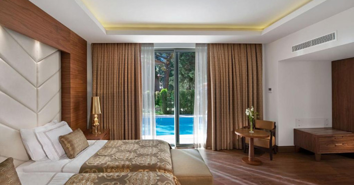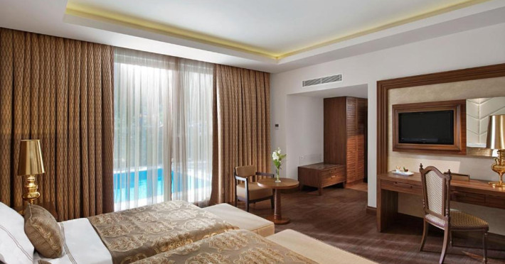 Facilitati hotel : restaurant principal - bufet deschis, restaurante A`La Carte - restaurantul Safran cu specific turcesc, Restaurantul Olive cu specific italian, restaurantul Pasa cu meniu special, Restaurantul Gulet cu spefic pescaresc, Elite bar, Snack bar, bar la piscina, bar pe plaja, Vitamin bar, Lobby bar , discoteca, asistenta medicala, baby sitting, curatatorie, coafor, internet, rent a car, magazine - toate sunt contra cost, piscina interioara si exterioara, piscine pentru copii, tobogane cu apa, centru fitness, baie turceasca, sauna, terenuri de tenis, baschet, volei pe plaja, tenis de masa, mini fotbal, sporturi de apa nemotorizate sunt fara plata., centru SPA, masajul, nocturna si echipamentele pentru tenis, sporturile de apa cu consum de carburanti, biliardul sunt cu plata, spectacole si muzica live, Mini club.
