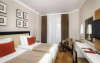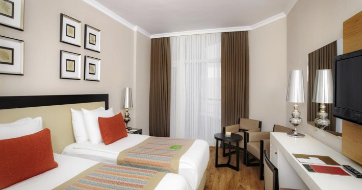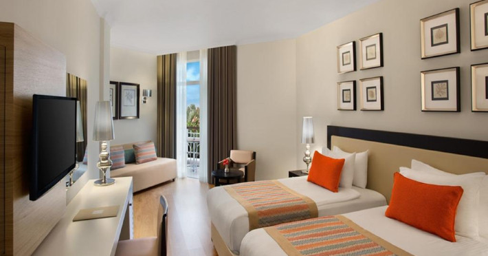 Cladirea principala: 195 camere standard (22-26mp, un dormitor, o baie, max 2+1 pers), 15 camere Family (32-36mp, max 4 pers, doua dormitoare separate si o baie), 1 King Suit (110mp, doua dormitoare, doua bai, un living, max 4 pax). De asemenea exita 72 camere standard in cladirile anexe B si C (22-25mp, un dormitor, o baie, max 2+1 pers); 49 camere Family duplex in cadirile anexe si cladirea principala (40mp, duplex, doua dormitoare, doua bai, max 5 pers); 12 camere Apart Standard (24mp, un dormitor, o baie, max 3+1pax), 42 camere Standard Comfort (28-32mp, un dormitor, o baie, in plus mini bar special, restaurant A'la Carte o singura data gratuit, cos de fructe, max 3 pers), 11 camere Comfort Family (36mp, doua dormitoare, doua bai, in plus mini bar special, restaurant A'la Carte o singura data gratuit, cos de fructe, max 4 pers). Toate camerele sunt dotate cu baie privata, cada sau dus, uscator de par, aer conditionat centralizat, telefon direct, mini bar (apa, bauturi racoritoare, apa minerala, bere, suc de fructe realimentat zilnic), seif, satelit TV si programe de muzica, conexiune Wi-Fi gratuit, parchet laminat si balcon.