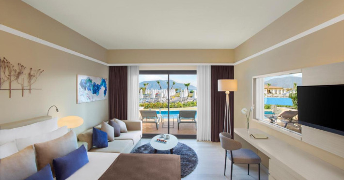 Akra Fethiye Tui Blue Sensatori - Ultra All Inclusive se află in Fethiye, la 5 minute de mers pe jos de Plaja Akmaz, și pune la dispoziție o piscină in aer liber sezonieră, un centru de fitness, o grădină și parcare privată gratuită. Această proprietate include un club pentru copii, precum și un restaurant, un parc acvatic și o terasă. Acest hotel oferă o piscină interioară, o saună, club de noapte și room-service.