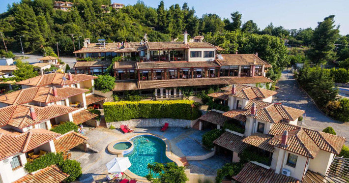 Cel mai apropiat aeroport este Aeroportul Salonic, situat la o distanță de 84 km. La cerere proprietatea organizează transfer la/de la aeroport contra cost.