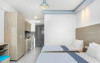 Camerele au TV cu ecran plat, o chicinetă utilată complet cu frigider și baie privată.