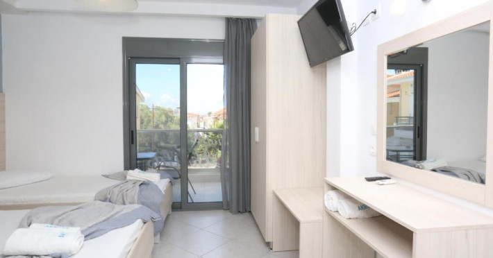 Hotelul Akritas se află la 2,3 km de Paralia Glarokabos si pune la dispoziție un bar, o grădină și unităti de cazare cu aer condiționat, WiFi gratuit și balcon.