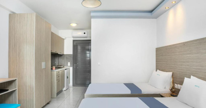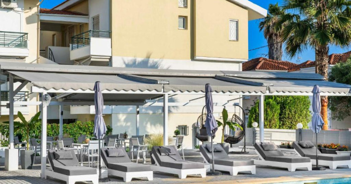Cel mai apropiat aeroport este Aeroportul Salonic, situat la 81 km de aparthotel.