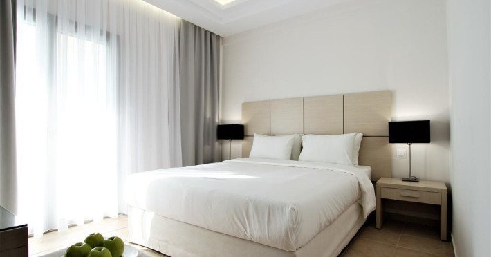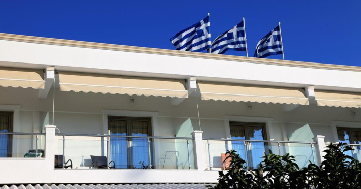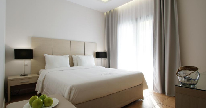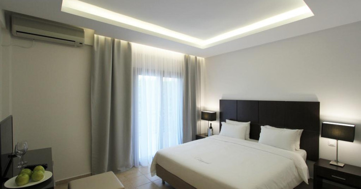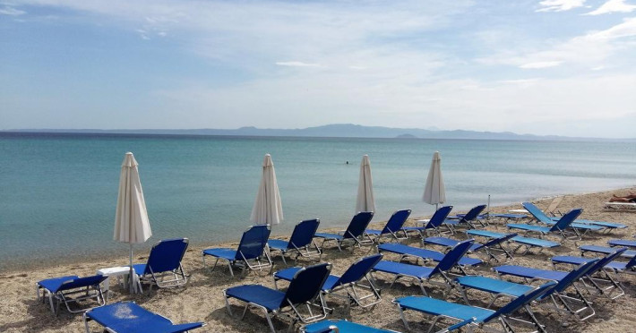 Akrogiali Exclusive Hotel are acces imediat la o plajă cu nisip. Pe plajă există șezlonguri și umbrele de plajă contra cost.
