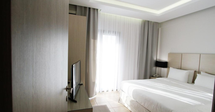 Sunt disponibile 18 camere. În camere există baie cu cadă sau duș ce are în dotare foehn și articole de toaletă gratuite. Fiecare cameră dispune de minibar și cană-fierbător. Oaspeții pot solicita serviciul de room service pentru a servi masa sau diverse băuturi. Camerele confortabile de la Akrogiali Exclusive Hotel au pardoseală de gresie/ marmură, aer condiționat, Tv cu canale prin satelit și seif. Unele camere au balcon, cu vedere la grădină, unde oaspeții se pot relaxa în compania celor dragi. Oaspeții au acces gratuit la serviciul Wi-fi în camere. Curățenia in cameră se face zilnic. Fiecare unitate de cazare are frigider. Proprietatea oferă camere pentru nefumători.