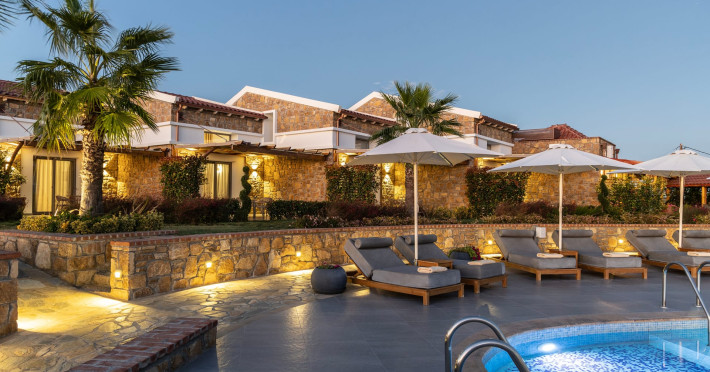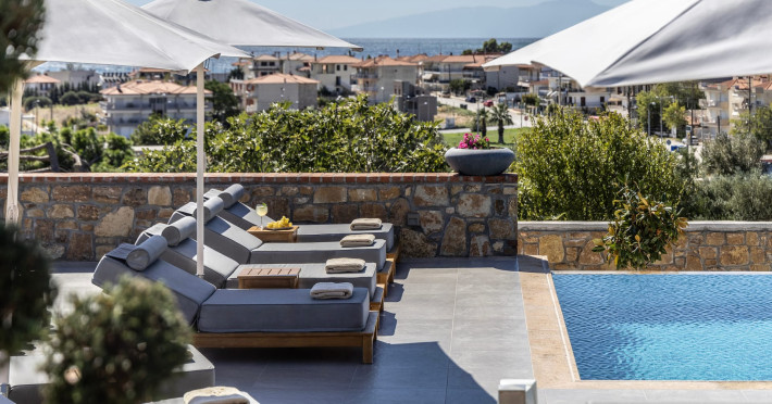 Akrolithos Luxury Suites is located in the village of Flogita, 45 km from Thessaloniki (35min by car), only 700m from the beach and close to restaurants and entertainment places. It consists of 9 luxurious sea-view suites, with maximum capacity of 4 persons (2 adults- 2 children). The resort has a spacious swimming pool with pool bar, restaurant, spa, botanic gardens, and parking space.nbsp;Datorita dinamicitatii domeniului disponibilitatea ofertelor se modifica de la un moment la altul. De aceea ofertele sunt valabile in limita locurilor disponibile. Agentia nu este responsabila pentru eventualele neconcordante care pot aparea intre informatiile privind tarifele si alte detalii din site si informatiile primite in agentie. In aceste cazuri vor avea prioritate, intotdeauna, informatiile primite in agentie.