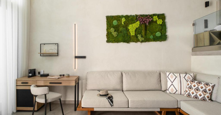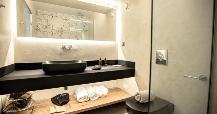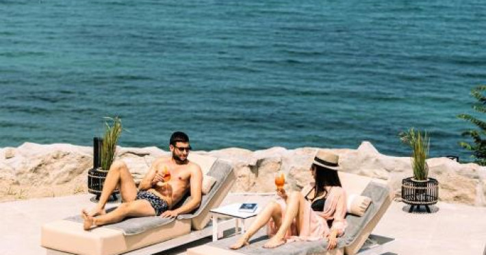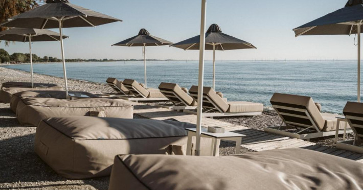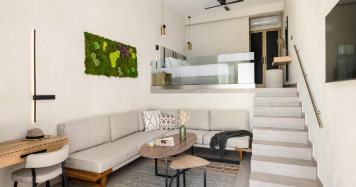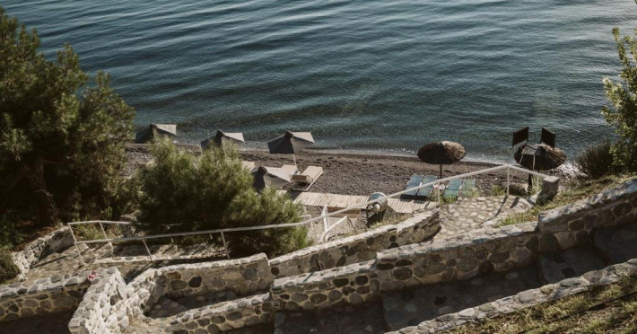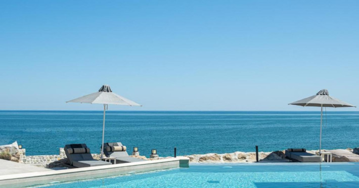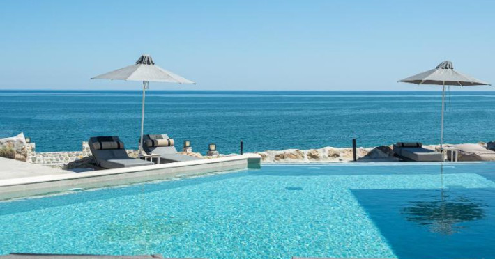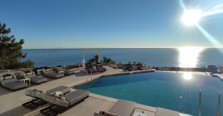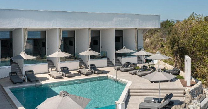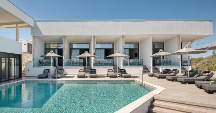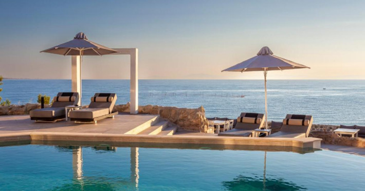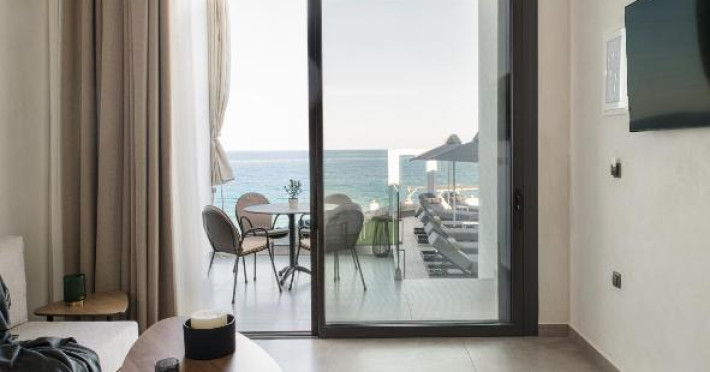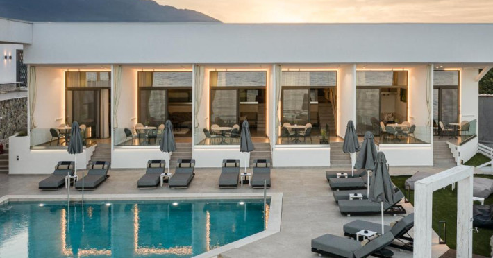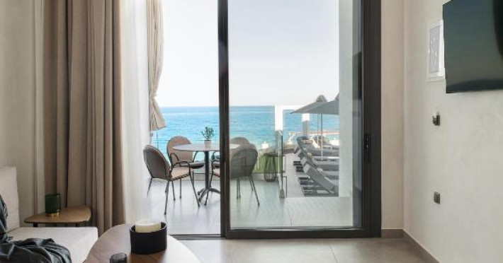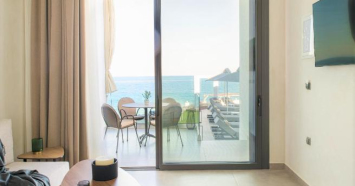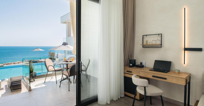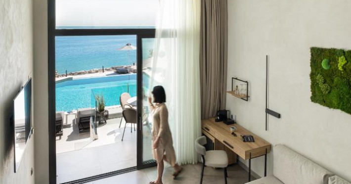 Camerele și suitele, decorate in tonuri naturale și dotate cu balcoane private, oferă un confort desăvarșit. Oaspeții se pot bucura de piscina infinity cu vedere panoramică, perfectă pentru momente de relaxare sub soarele grecesc.