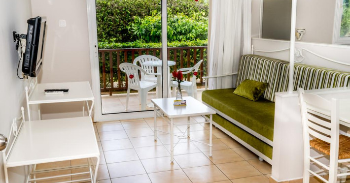 Sunt disponibile 148 camere. Unele camere au balcon, cu vedere la grădină, unde oaspeții se pot relaxa în compania celor dragi. În camere există baie cu cadă sau duș prevăzută cu foehn. Camerele confortabile de la Aktea Beach Village au pardoseală de gresie/ marmură, aer condiționat, Tv cu canale prin satelit și seif. Fiecare cameră dispune de cană-fierbător. Oaspeții au acces gratuit la serviciul Wi-fi în camere. Curățenia in cameră se face zilnic. Toate camerele spațioase de la Aktea Beach Village au zonă de relaxare cu canapea, ceea ce oferă un plus de confort. Fiecare unitate de cazare include o chicinetă utilată cu frigider, plită de gătit și ustensile de bucătărie. De asemenea, sunt disponibile o zonă de luat masa și un cuptor pentru prepararea mâncărurilor. Proprietatea oferă camere pentru familie cu o suprafață mai mare și un număr mai mare de paturi față de cele standard.