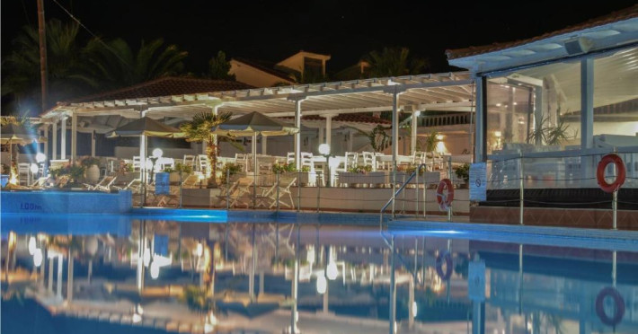 Restaurantul proprietății oferă un bufet continental bogat. Taverna hotelului servește pranz și cină à la carte, cu preparate din bucătăria grecească și internațională. Taverna Elia Tomata oferă fructe de mare proaspete si mancăruri traditionale de vară delicioase.