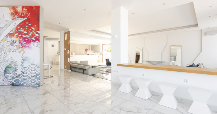 Barul cu decor maritim de pe plajă isi delectează oaspetii cu muzică, gustări usoare si băuturi.