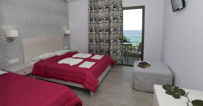 Situat chiar pe malul marii, la 1km distanta de Potos si 3km distanta de Limenaria.