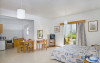 baie proprie cu cadă, uscător de păr, aer condiționat individual, telefon direct, televizor, radio, seif (contra cost), chicinetă cu plită, cuptor și mini-frigider, masă și scaune, noptiere, măsuță de toaletă, balcon sau terasă, facilităţi de călcat îmbrăcăminte (la cerere), papuci (contra cost).