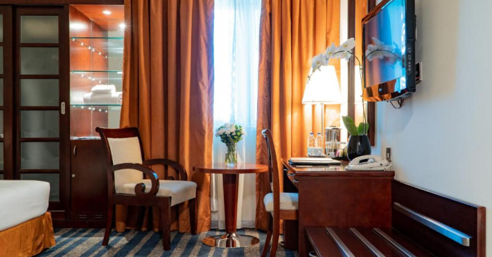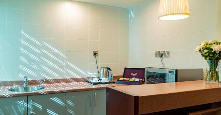 Camerele hotelului sunt toate mobilate elegant, inclusiv aer condiționat și facilități de suită. Toate camerele au televizoare LCD de 32 de inch cu canale prin satelit și facilități pentru prepararea de ceai și cafea.