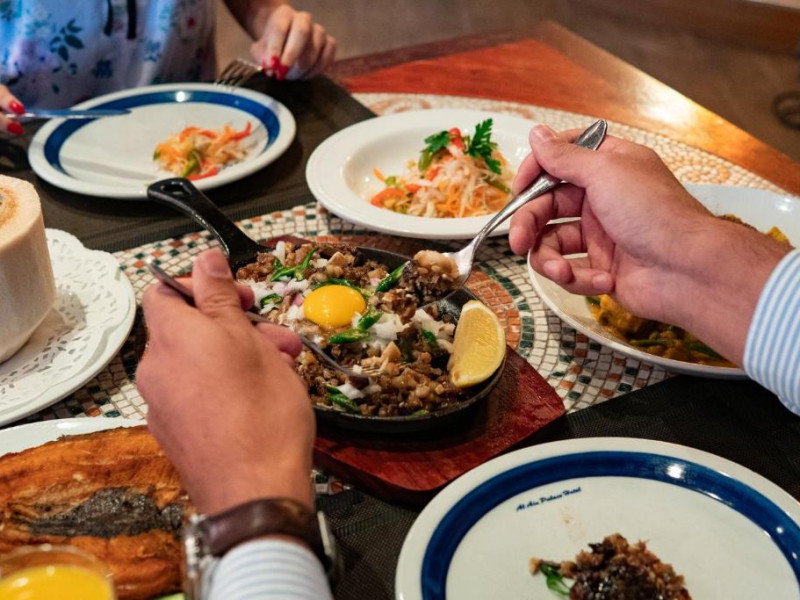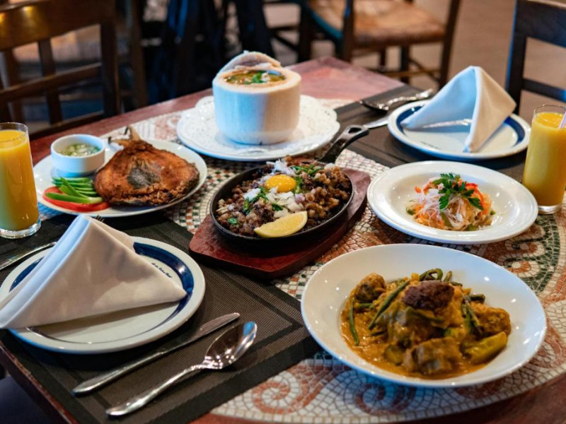 Există 5 restaurante la hotel care oferă o selecție variată de preparate internaționale, inclusiv restaurante de specialitate thailandeze, chinezești, japoneze și filipineze. Există, de asemenea, un pub in stil englezesc și un club de noapte.